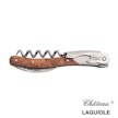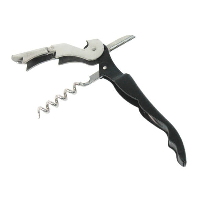 不僅價格便宜,而且操作容易好上手。首先先用鋸齒小刀在瓶口割開封鉛,接著再用螺旋鑽頭朝軟木塞中心點往下鑽,到底後,先卡第一段拔起,再卡第二段將軟木塞直直拔岀。 小小一把開瓶器,基本侍酒刀的配置都有,就連開啤酒也不是問題,是許多葡萄酒從業人員基本必備工具。