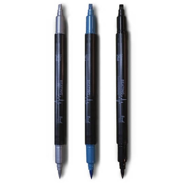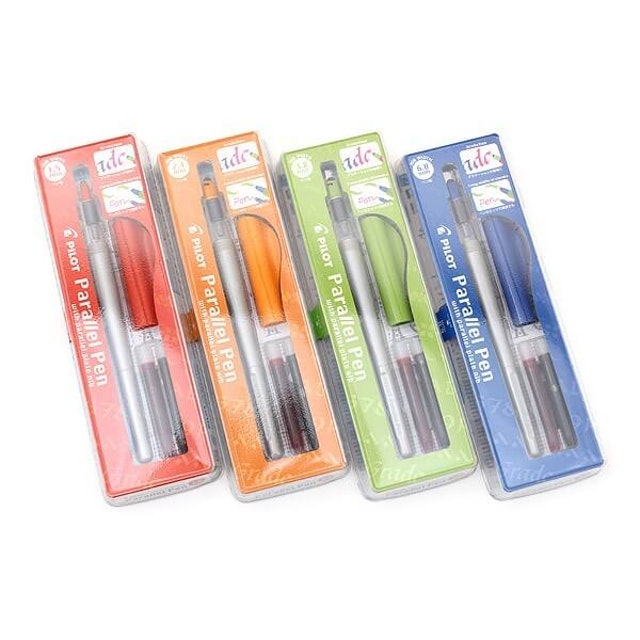 不像沾水筆、鋼筆需要填充墨水等步驟,打開筆蓋就能直接使用的麥克筆,對於初學者來說比較容易上手。雙筆頭的設計,筆寬各為2mm及3.5mm,非常適合用來寫歌德體、義大利體等初階字體。筆頭扎實耐用,寫起來的線條十分細緻,而且顏色選擇多,可以寫出各種不同的設計效果。